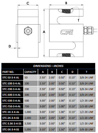 STC S-TYPE TENSION/ COMPRESSION LOAD CELL 50 — 5,000 lbf